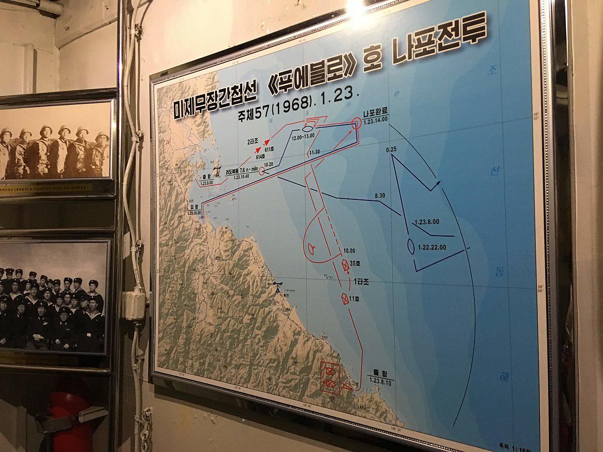 USS Pueblo hanya berlayar mengelilingi seluruh Semenanjung Korea sebuah langkah yang berani dan berisiko, karena rute ini membawanya dalam jangkauan pasukan angkatan laut AS di Pasifik. Kapal tersebut kemudian dipamerkan di Sungai Taedong dan tetap berada di sana selama bertahun-tahun. Lokasi ini penting secara historis, karena merupakan tempat yang sama di mana USS General Sherman, kapal dagang (atau pembajakan) AS, dihancurkan oleh penduduk Pyongyang pada tahun 1866.